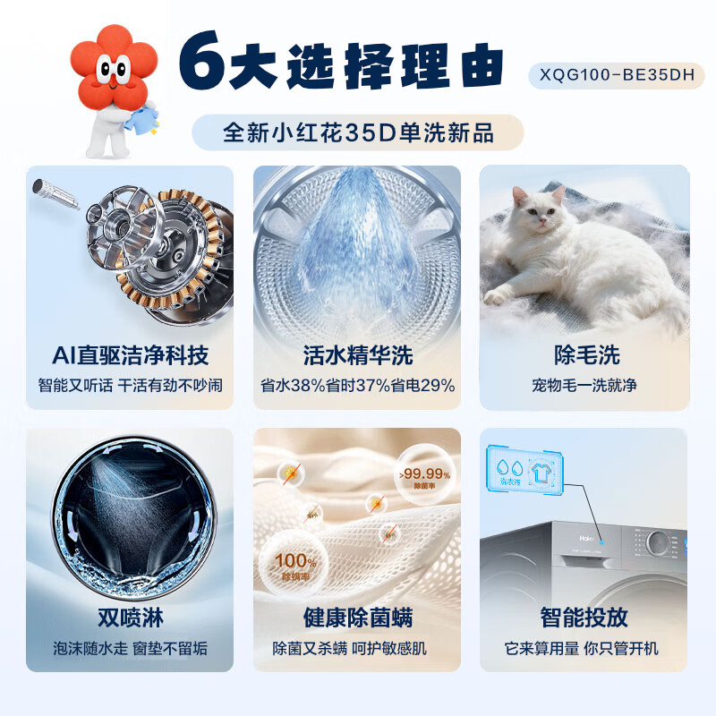 海尔(Haier)滚筒洗衣机全自动10公斤超薄家用家电国家补贴 京东自营直驱BE35DH 一级能效以旧换新内衣洗出租房