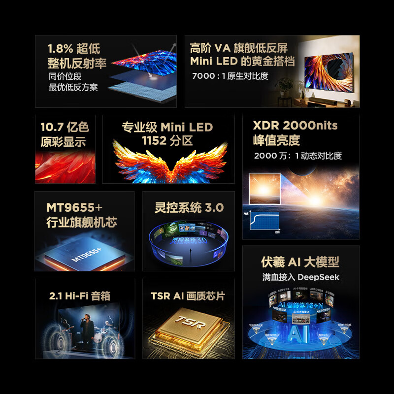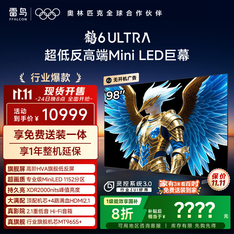 TCL雷鸟电视 98鹤6 Ultra 25款 98英寸MiniLED华星HVA 家电国家补贴98/100英寸电视98S595C Ultra-A