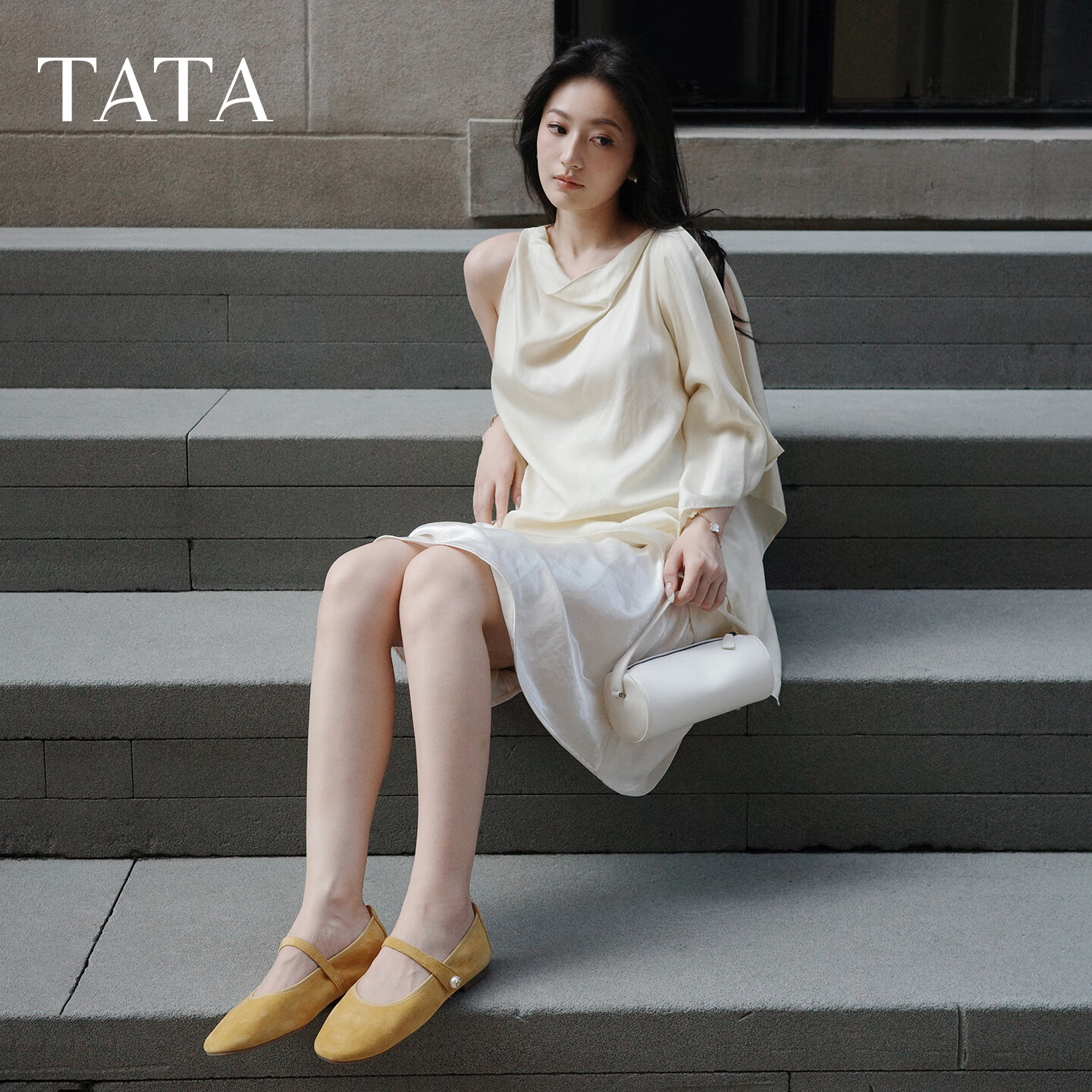 他她(TATA)女鞋秋冬新款浅口单鞋时尚休闲鞋玛丽珍羊皮芭蕾鞋子YTK01CQ5 黄色 38
