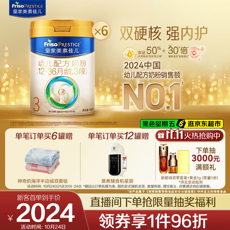美素佳儿(Friso)皇家幼儿配方奶粉 3段(1-3岁幼儿适用)800g*6 乳铁蛋白(新国标)