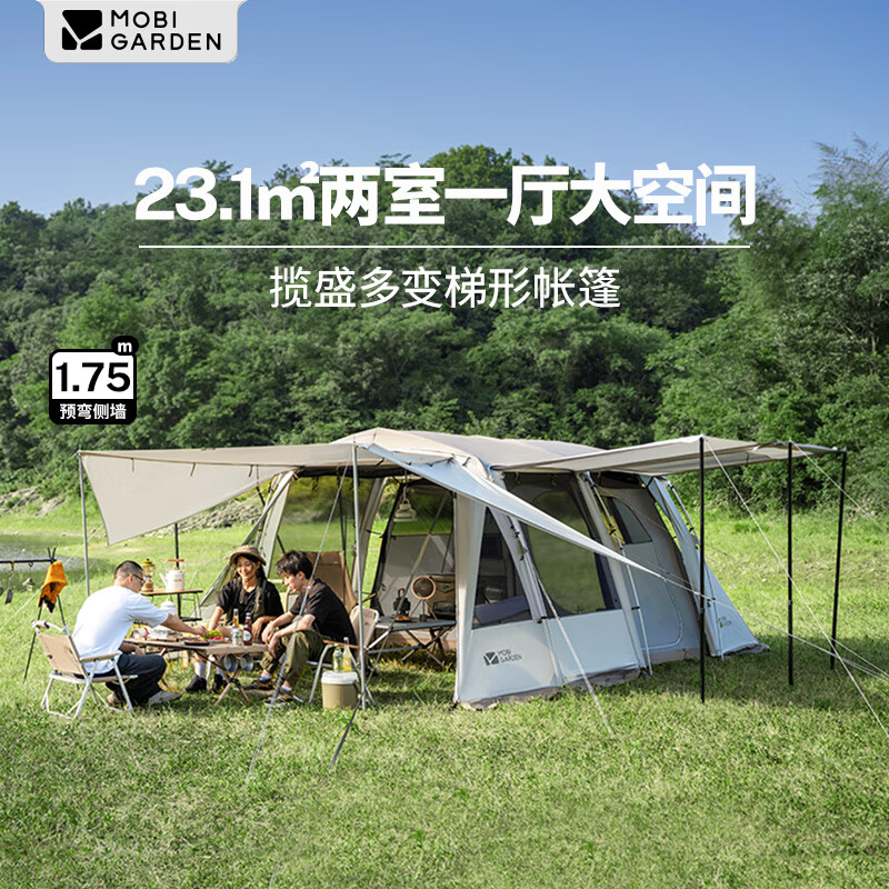 牧高笛(MOBIGARDEN)揽盛帐篷 户外露营两室一厅大空间防风防雨多门大前厅隧道帐篷 揽盛3杆/晨雾白(帐篷+顶篷套餐)