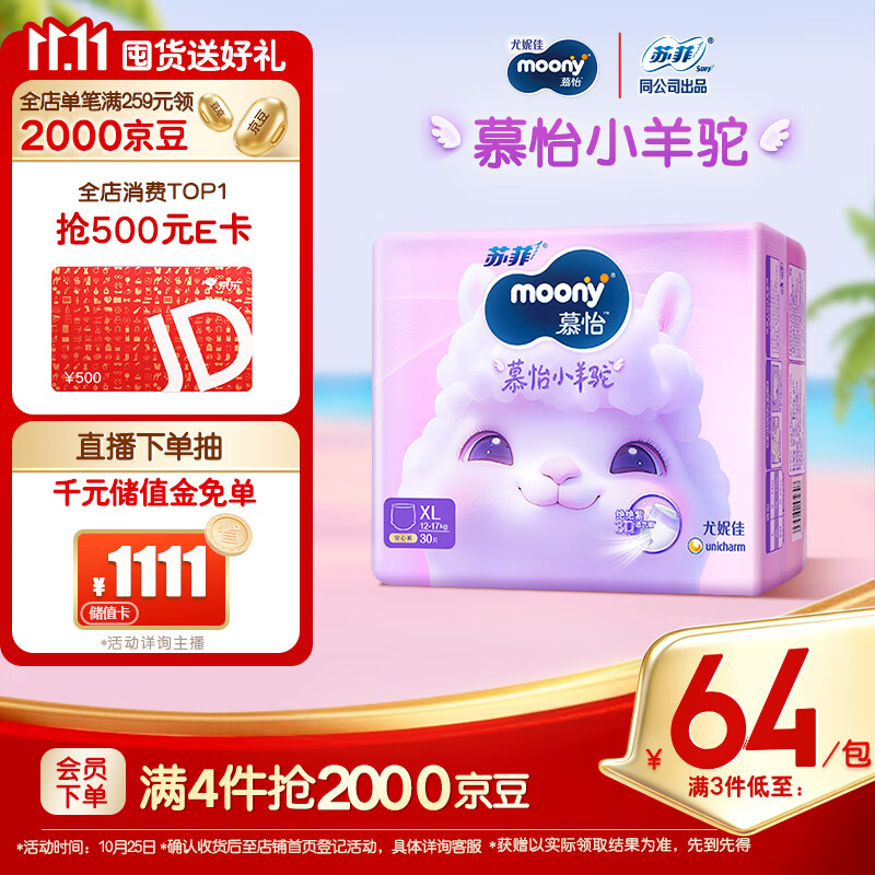 MOONY苏菲尤妮佳Q薄萌羽慕怡小羊驼拉拉裤XL码30片(12-17kg)超薄透气