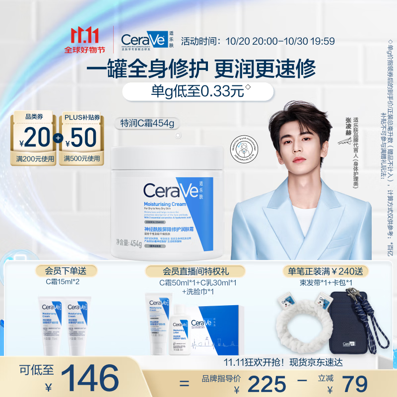 适乐肤(CeraVe)【张凌赫同款】润肤C霜454g(高保湿敏感肌身体乳液面霜男女护肤)