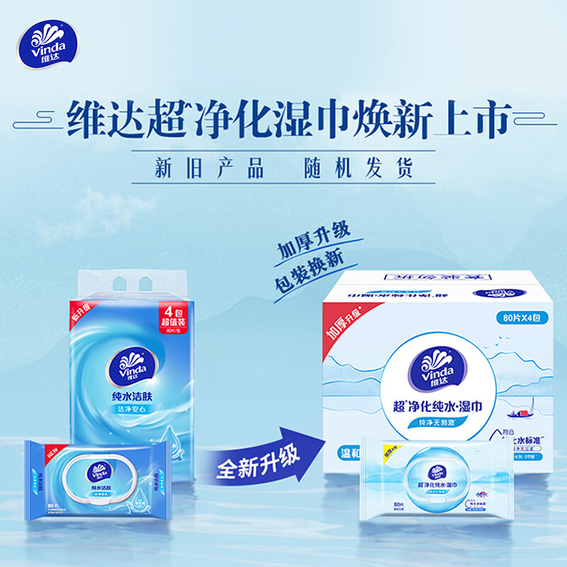 维达(Vinda)超净化纯水湿巾 80片*12包 婴儿湿巾手口可用湿巾 新旧随机发货