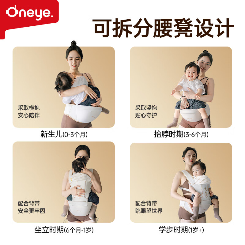 丸丫云感腰凳婴儿抱式宝宝背带多功能四季通用抱娃神器老花香槟金色