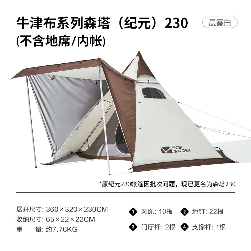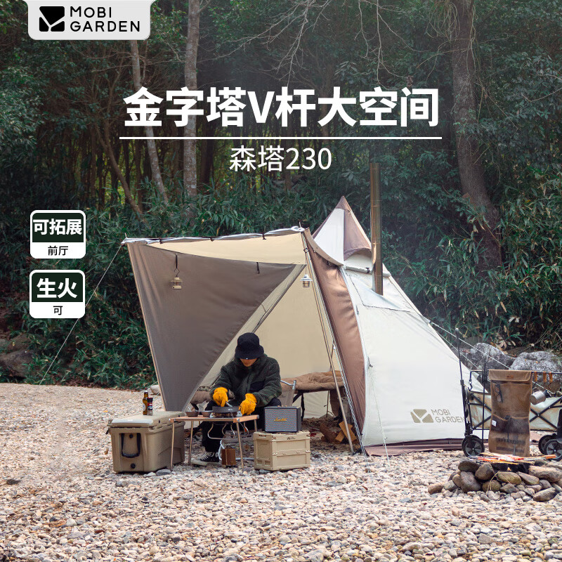 牧高笛(MOBIGARDEN)森塔 户外露营大空间带雪裙营地帐带烟囱口A塔帐篷 森塔230/帐篷+内帐+地席套餐