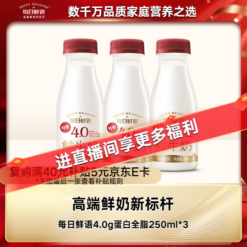 每日鲜语4.0g优质蛋白低温牛奶鲜牛奶250ml*3瓶