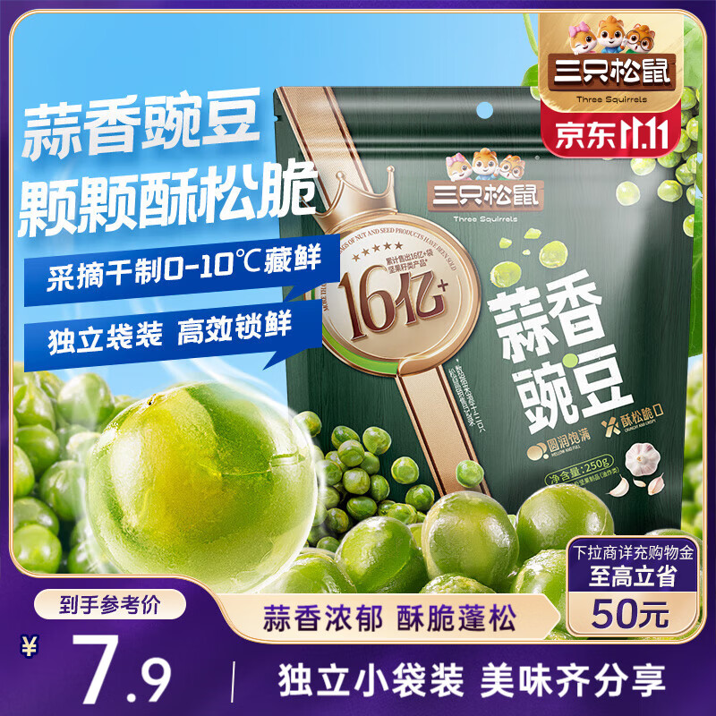 三只松鼠蒜香豌豆250g/袋 青豆坚果炒货办公室干果休闲零食小吃独立小包