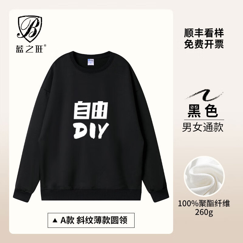 蓝之旺 卫衣定制工作服印字logo班服外套男女4S店文化衫订做情侣衣服diy A款黑色 M