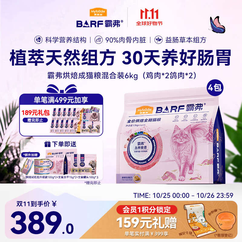 麦富迪猫粮 barf霸弗烘焙猫粮成幼猫粮生骨肉高蛋白养胃益肠混合装6kg