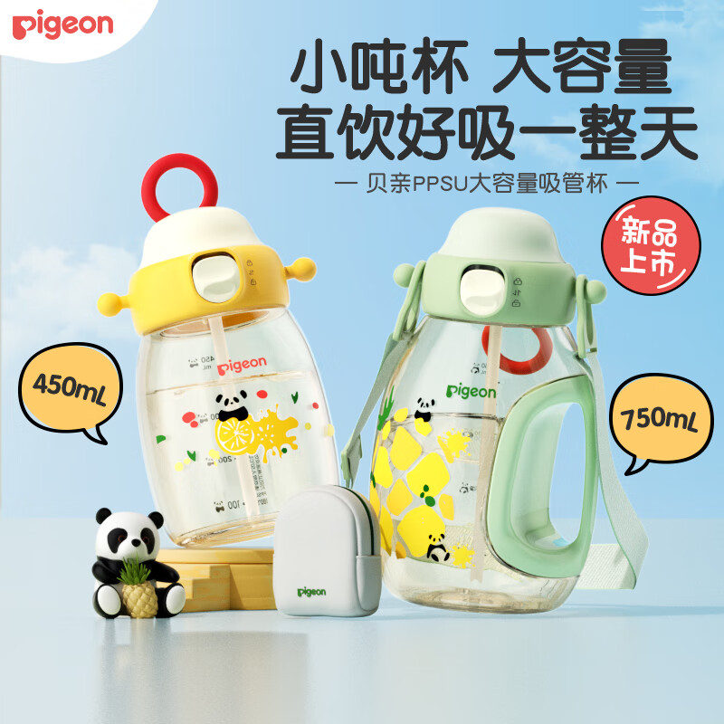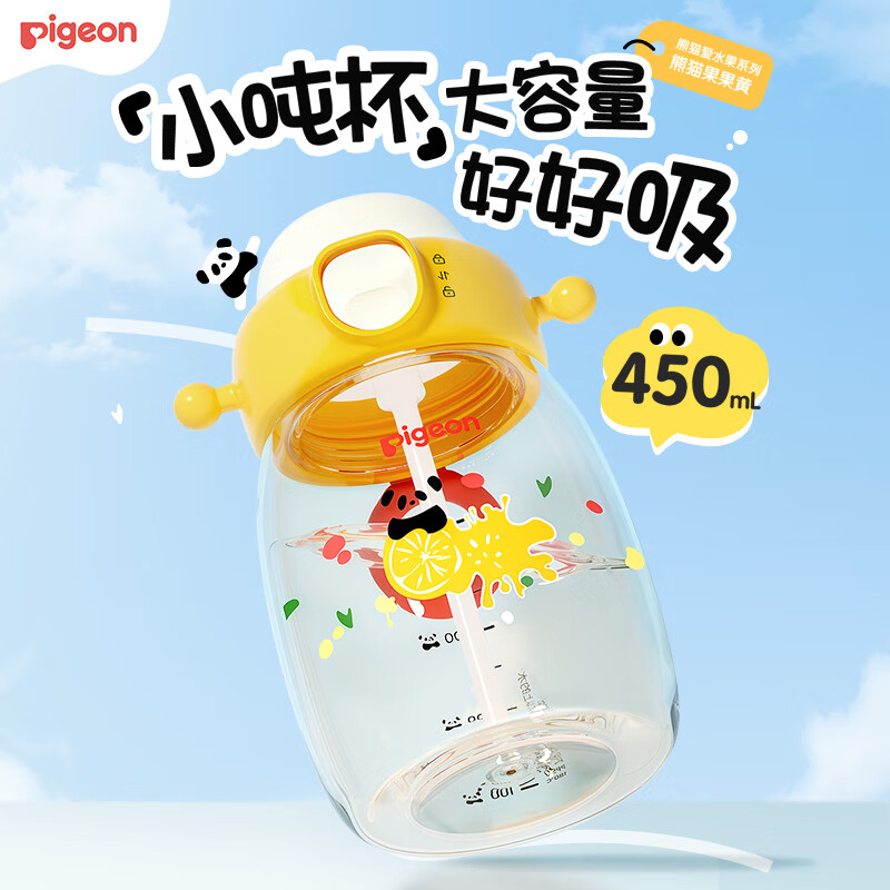 贝亲(Pigeon)吨吨桶儿童水杯2岁+直饮吸管杯ppsu450ml幼儿园学生水壶 黄色