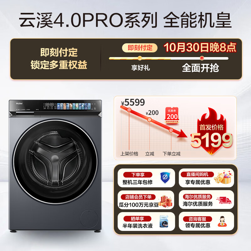 海尔(Haier)云溪4.0pro系列7KJ3滚筒洗衣机全自动10公斤 超薄家用家电国家补贴 京东自营 一级能效以旧换新