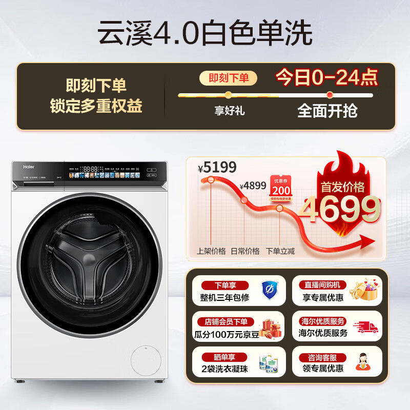 海尔(Haier)云溪4.0系列583W滚筒洗衣机全自动10公斤超薄家用家电国家补贴 京东自营 一级能效以旧换新内衣洗