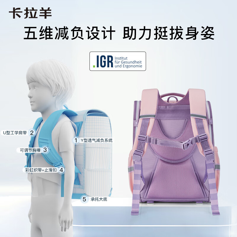 卡拉羊【蒋勤勤代言】书包小学生1-3-6年级防下坠减负大嘴书包儿童书包 【18L】酒红|五维减负设计