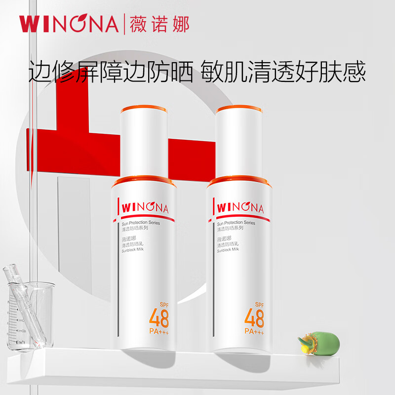 薇诺娜清透防晒乳双支装防晒霜隔离霜护肤品化妆品男女