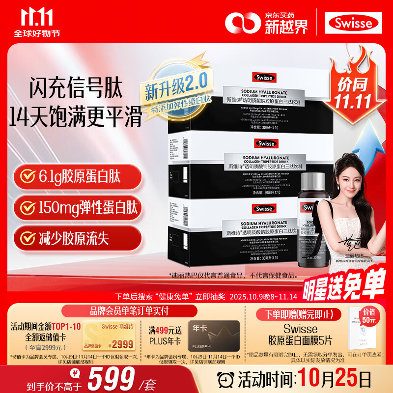 Swisse斯维诗 胶原水光瓶Pro 每瓶6100mg胶原蛋白肽送女友 10瓶*3盒