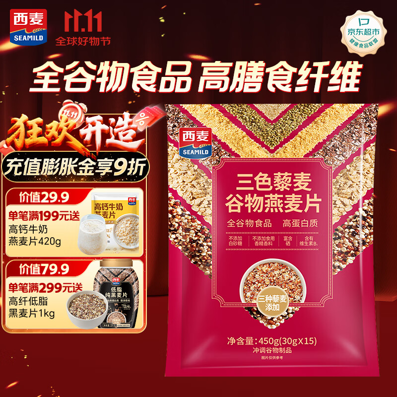 西麦三色藜麦混合谷物燕麦片450g 营养早餐冲饮谷物无额外添加蔗糖