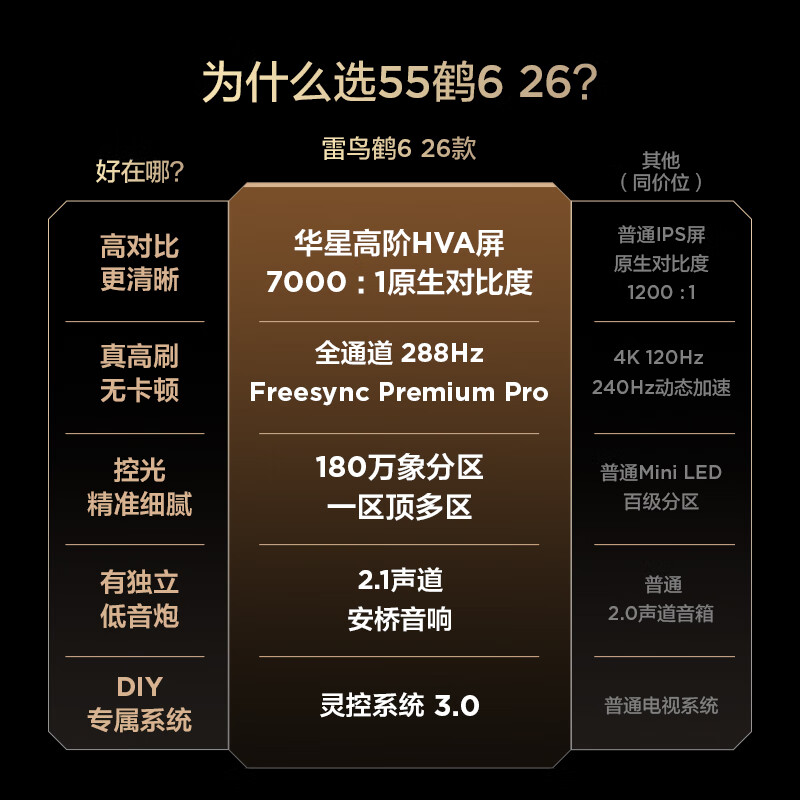 FFALCON雷鸟鹤626款 55英寸 万象分区QD-MiniLED1100nits 高阶HVA安桥音响288Hz高刷 平板游戏电视55R69A