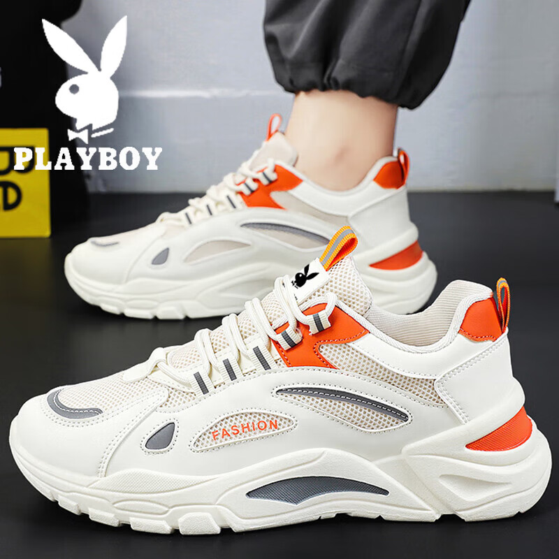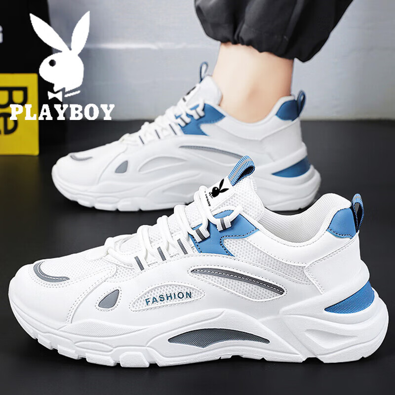 花花公子鞋子男鞋2025秋冬季新款透气休闲网面老爹鞋子男款男士运动板鞋男 白蓝(网面透气) CPL1253464 40