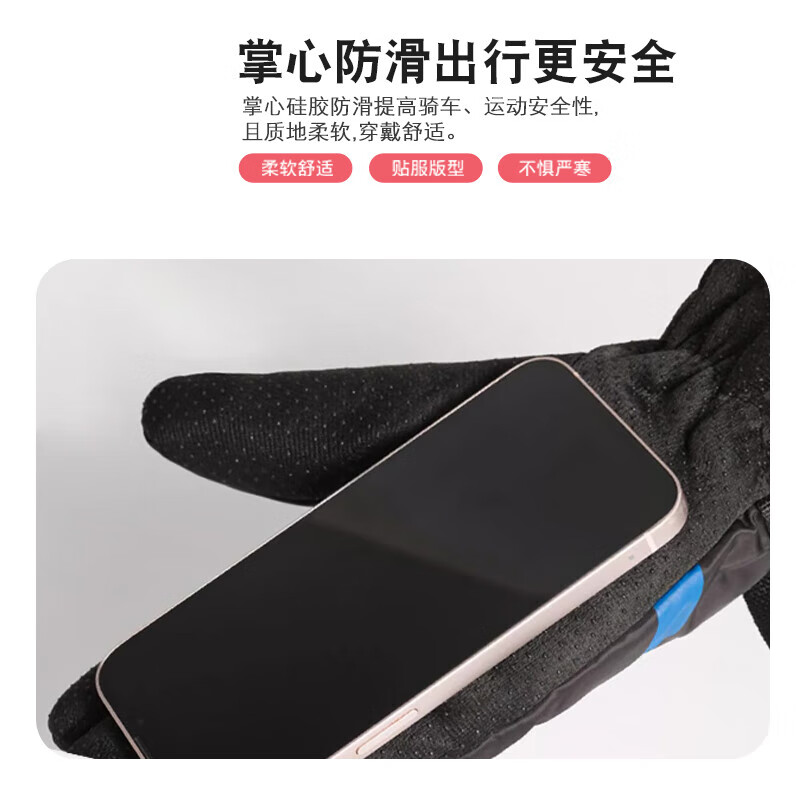 【全网爆款】滑雪手套男冬季加绒加厚保暖骑车防寒女电动车防风 U款蓝色【加绒加厚】