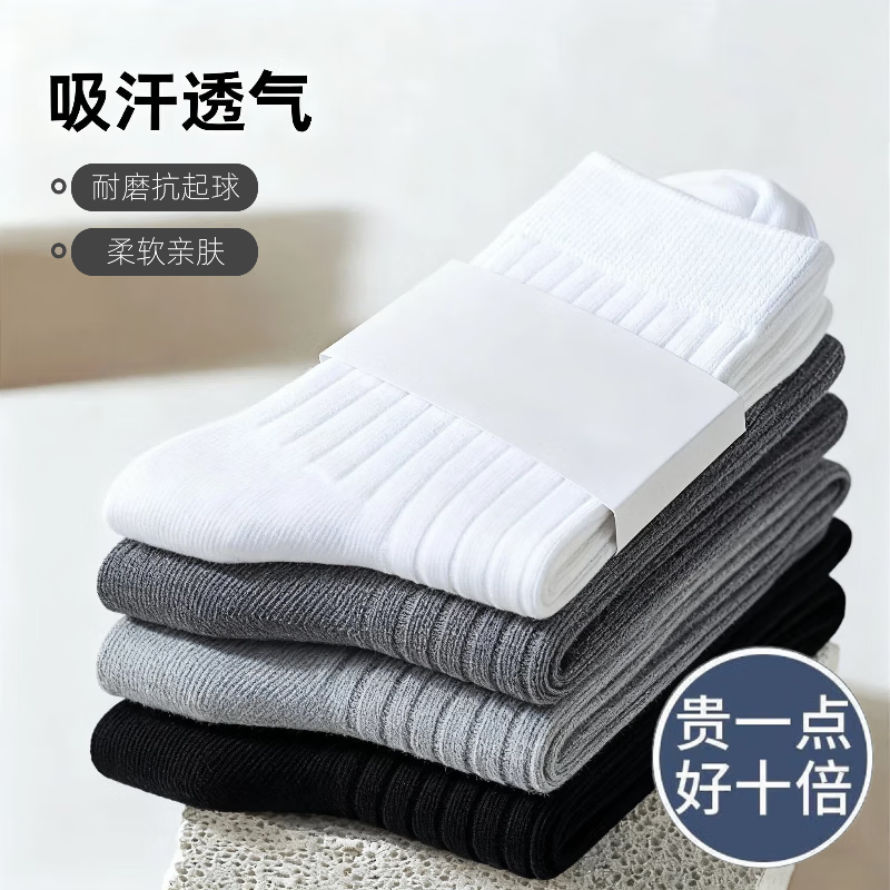 【已售100w单】袜子男士春秋中筒袜吸汗防臭运动男袜商务袜 中筒【1黑+1白+1藏青】 3双
