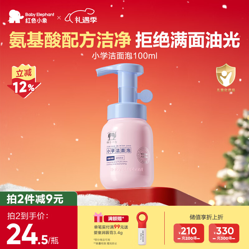 红色小象小学洁面泡100ml 儿童宝宝温和清洁洗面奶可卸防晒舒缓青少年
