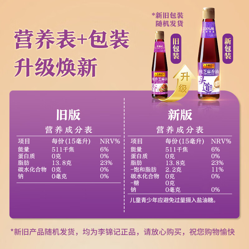 李锦记 纯芝麻香油410ml【一级】100%芝麻香油 京东品酒会同款 油碟凉拌