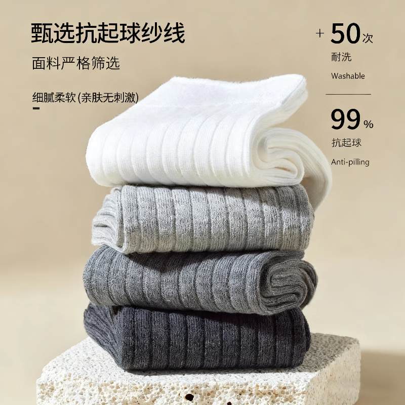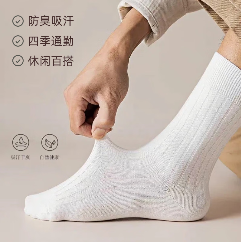 【经典竖纹男袜】袜子男士经典纯色竖纹吸汗透气防臭中筒袜 黑色 2双