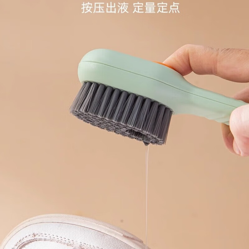 加液鞋刷?居家多功能加液鞋刷家用按压式软毛洗衣清洁洗鞋刷不伤 绿色鞋刷【单个装/送挂钩】