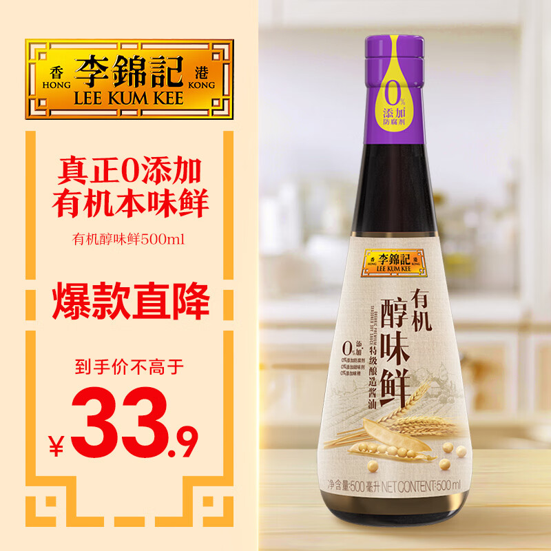 李锦记 有机醇味鲜500ml【特级 0添加】有机认证健康安心 头道 酱油生抽
