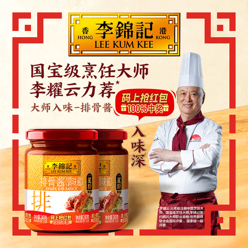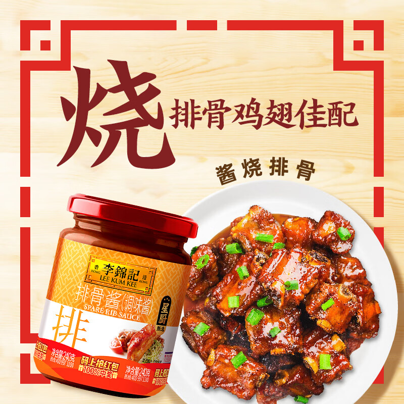 李锦记 排骨酱240g 国宝级大师推荐 海鲜烧烤 腌焖炒炖 中式酱料