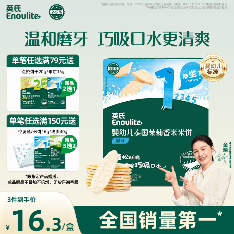 英氏(Engnice)婴幼儿米饼原味 婴儿宝宝零食 儿童磨牙饼干零食48g 6个月以上