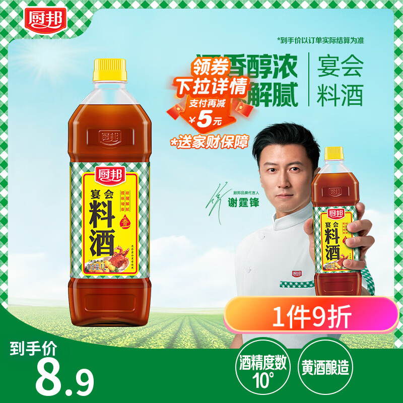 厨邦调味料酒1L 去腥解膻增鲜提味 黄酒酿造厨房厨师宴会料酒
