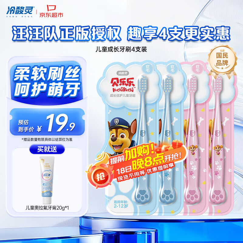 冷酸灵儿童牙刷汪汪队联名适合2-12岁男女宝宝 柔软毛小头牙刷4支套装