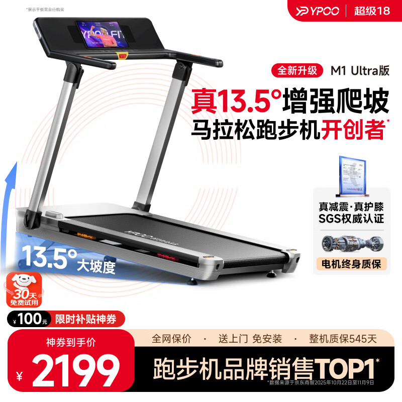 易跑YPOO马拉松跑步机家庭用智能爬坡护膝静音折叠健身器材M1 Ultra