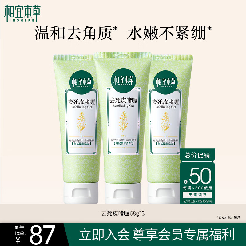 相宜本草【热卖商品】去死皮啫喱68g*3支装(洗面奶 去角质)圣诞礼物