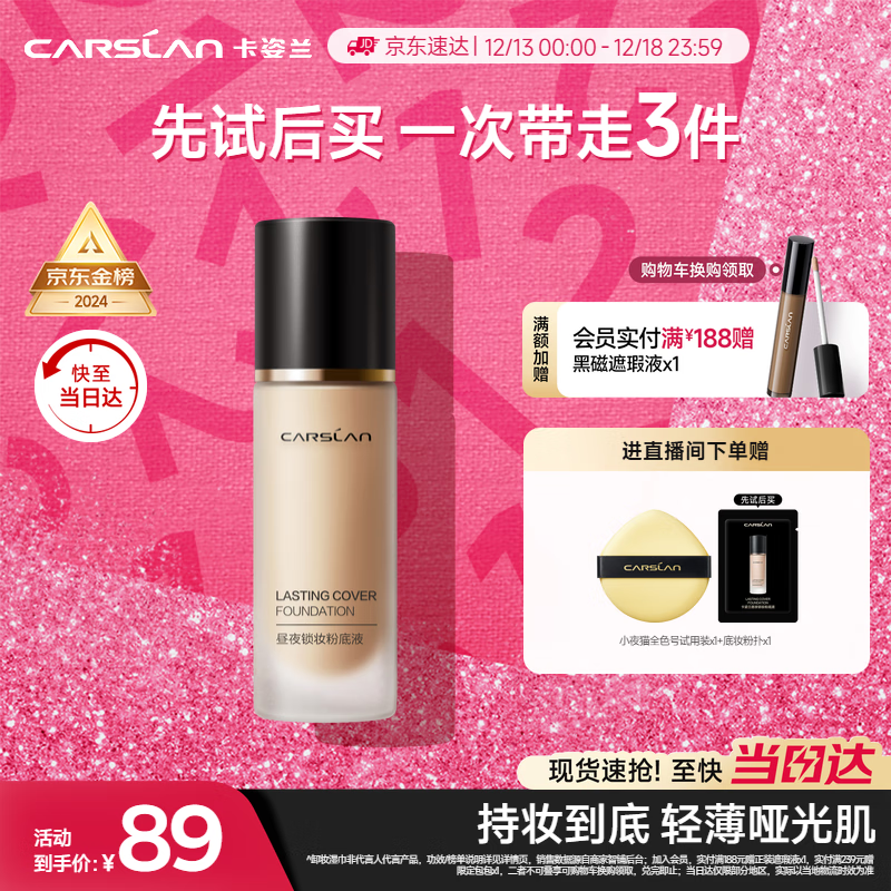 卡姿兰(Carslan)小夜猫粉底液遮瑕持久保湿控油不脱妆油皮02#象牙色30g圣诞节礼物