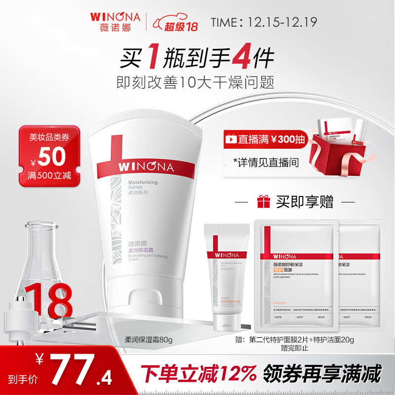 薇诺娜柔润保湿霜80g乳液面霜补水保湿滋润护肤品圣诞礼物