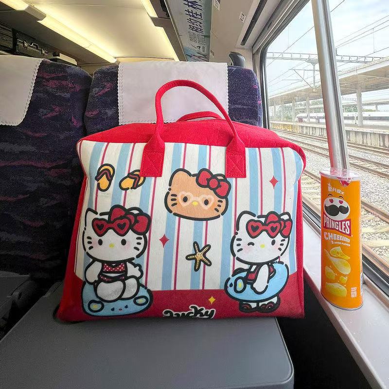 卡通毛毡旅行包收纳收纳袋大容量可爱外出行李包拉杆箱可套必备 红色KT猫【40cm*30cm*20cm】可挂行李箱