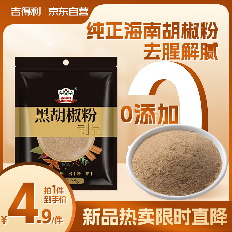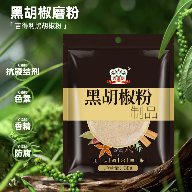吉得利 黑胡椒粉38g 袋装 【海南胡椒】黑椒牛柳烤鸡翅牛排意面沙拉调料