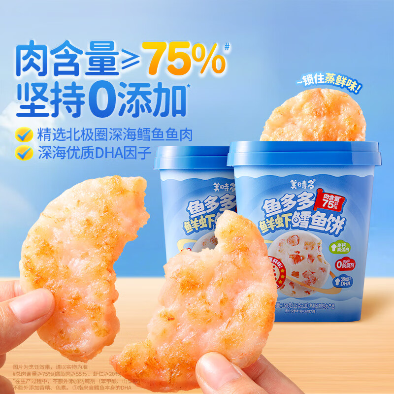 美时多鲜虾鳕鱼饼宝宝零食鱼肉饼儿童鳕鱼肠即食虾饼原味150g