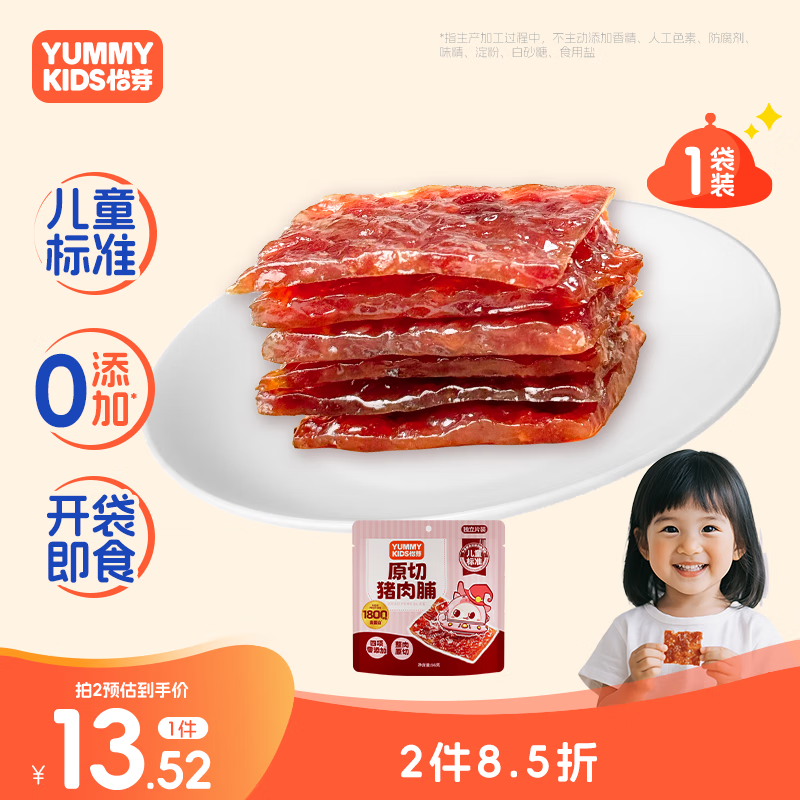 怡芽原切猪肉脯儿童零食高蛋白肉类零食宝宝零食56g/袋