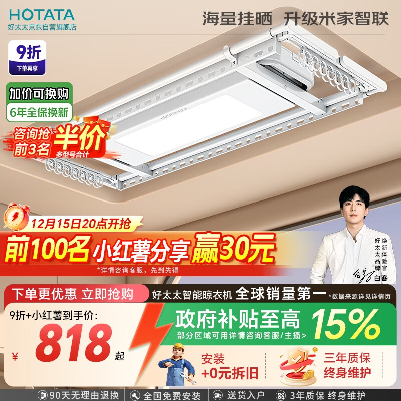 好太太(Hotata)【国家补贴】电动晾衣架智能隐形超薄阳台晾衣架升降晾衣杆D10-ZM