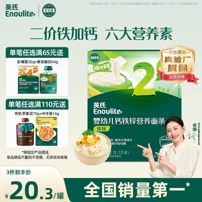 英氏婴幼儿钙铁锌面条原味200g 宝宝辅食挂面儿童面早餐面 采销真验厂