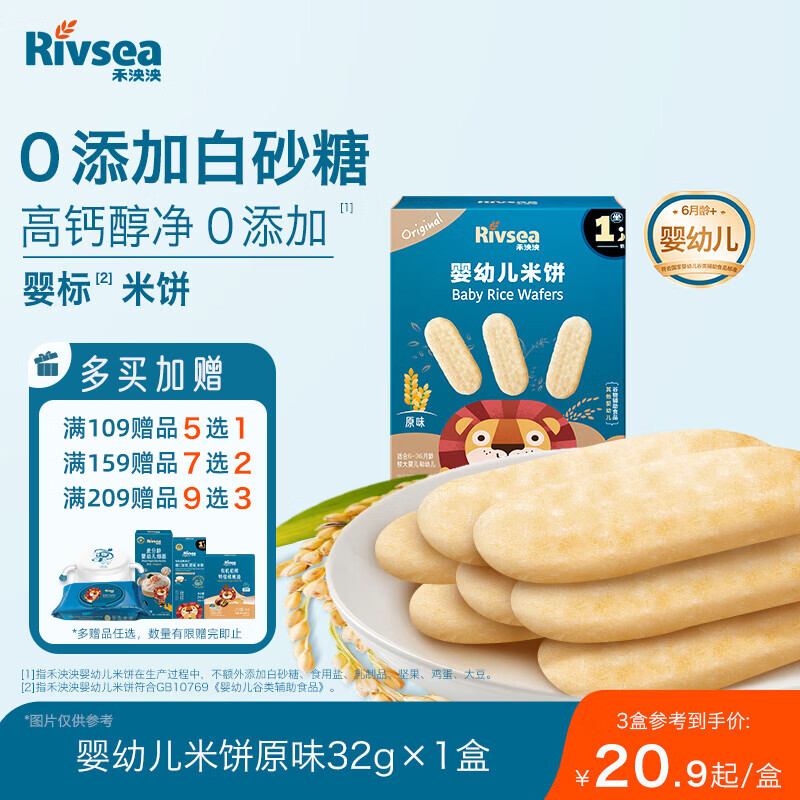 禾泱泱婴幼儿米饼原味32g(20片) 婴儿宝宝零食 入口易溶高钙6月+