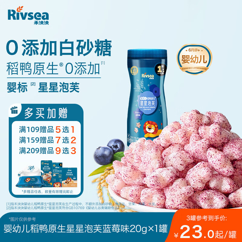 禾泱泱婴幼儿稻鸭原生星星泡芙蓝莓味20g 高钙高蛋白宝宝零食小巧易抓