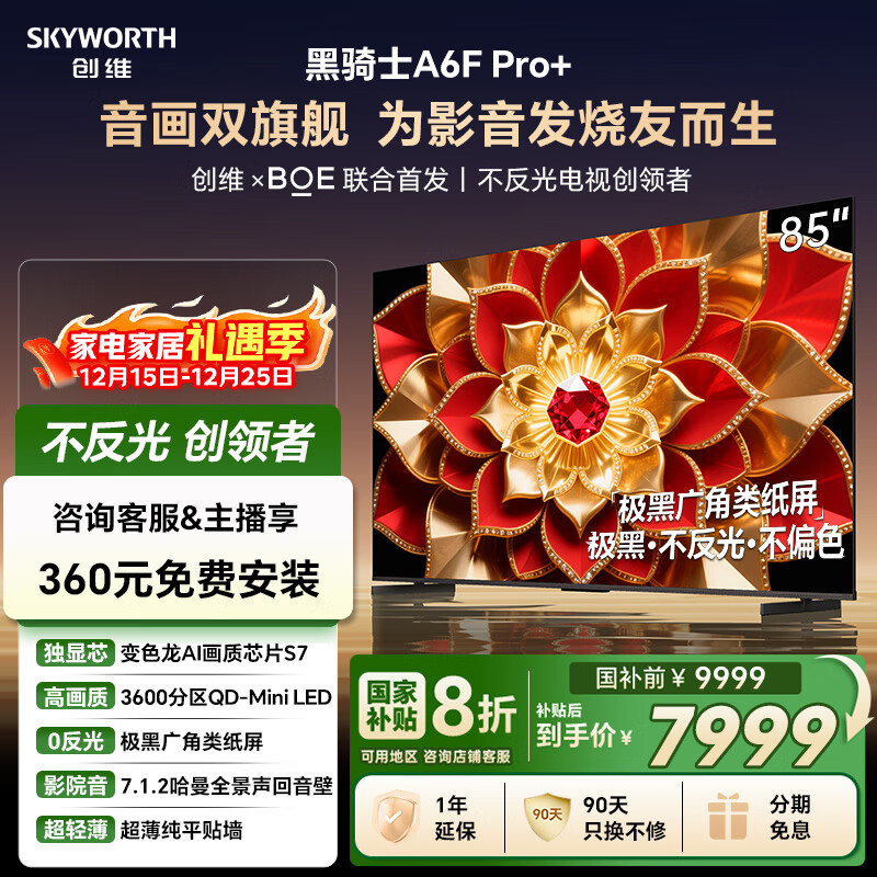 创维电视A6F Pro+ 85英寸智能平板电视机3600分区QD-Mini LED 液晶游戏 国家补贴 A6F Ultra