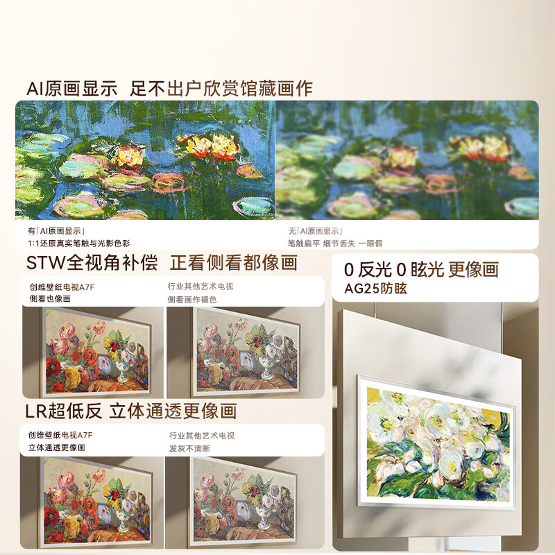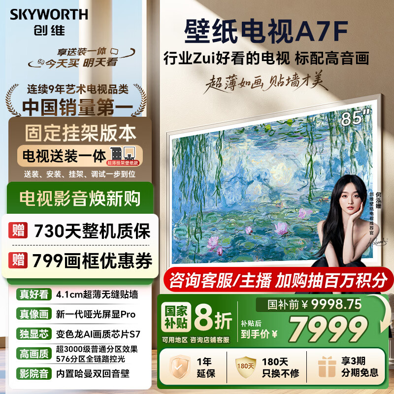 创维壁纸电视A7F 安装版【固定挂架送装一体】85英寸超薄壁画艺术mini led 智能平板液晶电视机