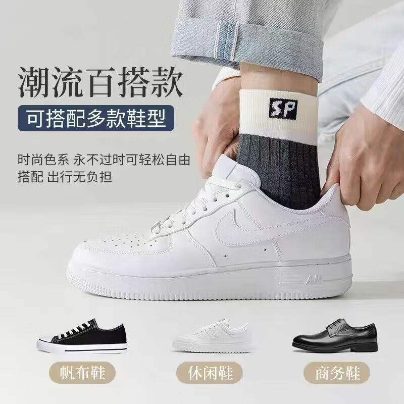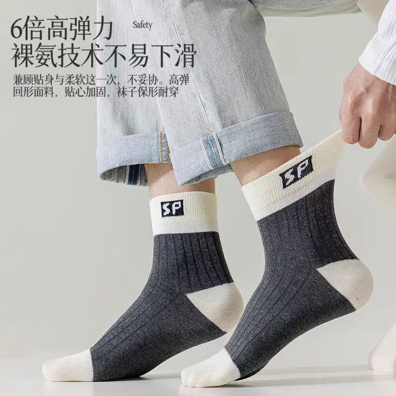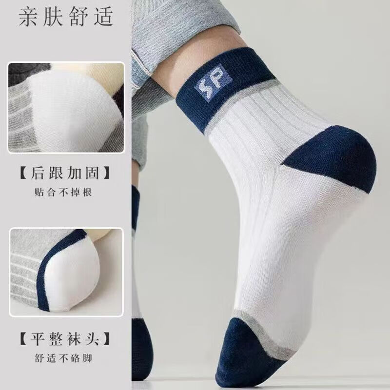 【简约中筒】袜子男防臭舒适吸汗四季款运动休闲百搭拼色透气长袜 中帮抗菌男袜(3双装) 均码