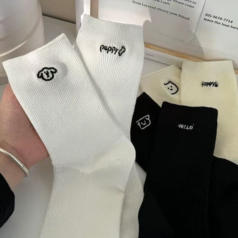 秋冬纯色狗狗袜子女厚款日系可爱AB中筒袜ins竖纹高颜值卡通长袜 AB狗【2双混色】 均码